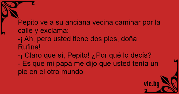 Pepito ve a su anciana vecina caminar por la calle y exclama: