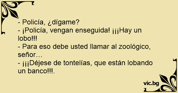 - ¡Policía, vengan enseguida! ¡¡¡Hay un lobo!!!