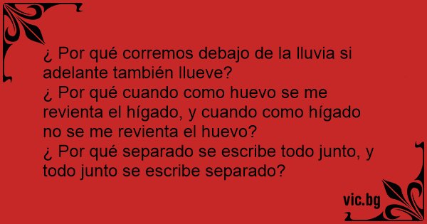 ¿ Por qué corremos debajo de la lluvia si adelante también llueve?