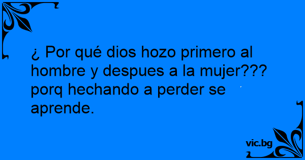 ¿ Por qué dios hozo primero al hombre y despues a la mujer??? porq hechando a perder se aprende.