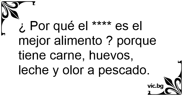 ¿ Por qué el **** es el mejor alimento ? porque tiene carne, huеvоs, leche y olor a pescado.