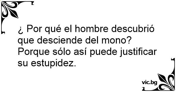 ¿ Por qué el hombre descubrió que desciende del mono?<br />Porque sólo así puede justificar su estupidez.
