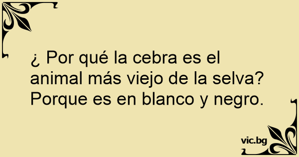 - Брат кое е најстаро животно? - Зебра. - Како заклучи? - Па сите животни се у боја, само она е црно-бела.