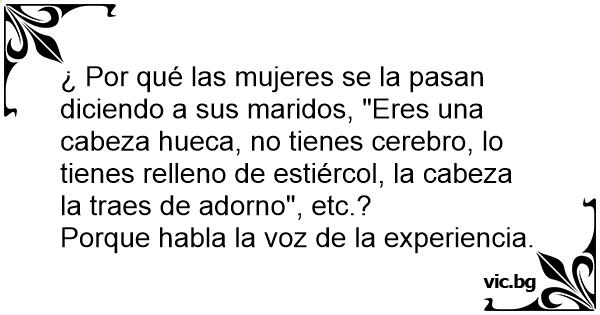 ¿ Por qué las mujeres se la pasan diciendo a sus maridos, "Eres una cabeza hueca, no tienes cerebro, lo tienes relleno de estiércol, la cabeza la traes de adorno", etc.?