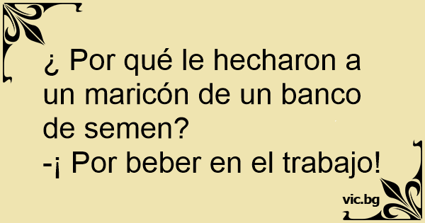 - Har du hört om bögen som jobbade på spermabanken? - ??? - Han fick sparken för att han drack på jobbet.
