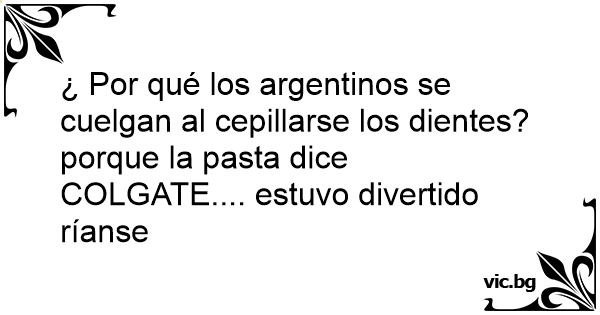 ¿ Por qué los argentinos se cuelgan al cepillarse los dientes? porque la pasta dice COLGATE.... estuvo divertido ríanse