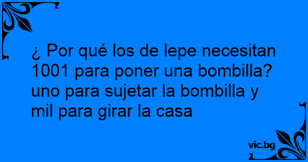¿ Por qué los de lepe necesitan 1001 para poner una bombilla? uno para sujetar la bombilla y mil para girar la casa