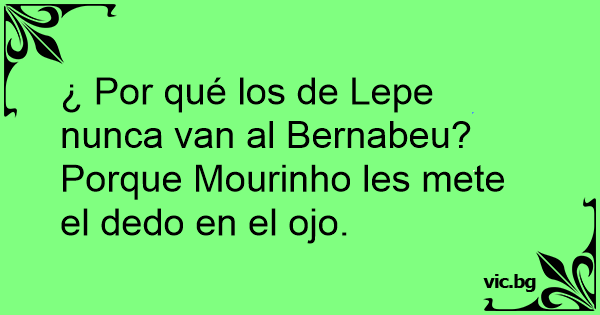 ¿ Por qué los de Lepe nunca van al Bernabeu?Porque Mourinho les mete el dedo en el ojo.