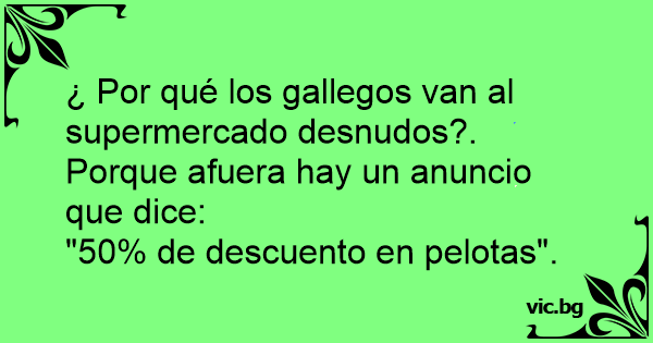 ¿ Por qué los gallegos van al supermercado desnudos?. Porque afuera hay un anuncio que dice: