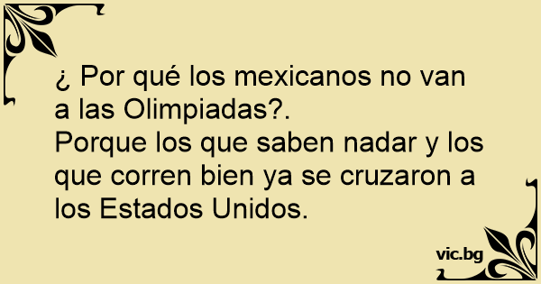 ¿Porque México no tiene equipo olímpico? Porque todos los mexicanos que saben correr, saltar y nadar están en Estados Unidos