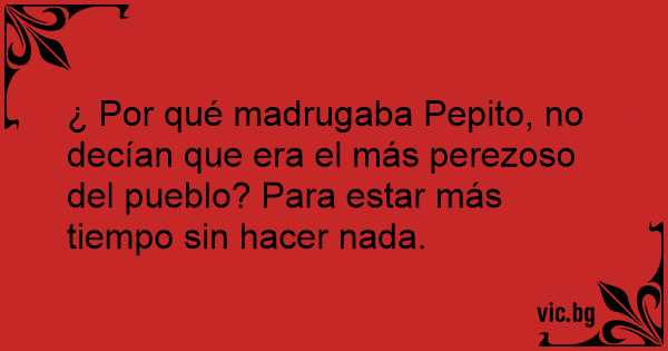 ¿ Por qué madrugaba Pepito, no decían que era el más perezoso del pueblo? Para estar más tiempo sin hacer nada.