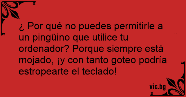 ¿ Por qué no puedes permitirle a un pingüino que utilice tu ordenador? Porque siempre está mojado, ¡y соn tanto goteo podría estropearte el teclado!