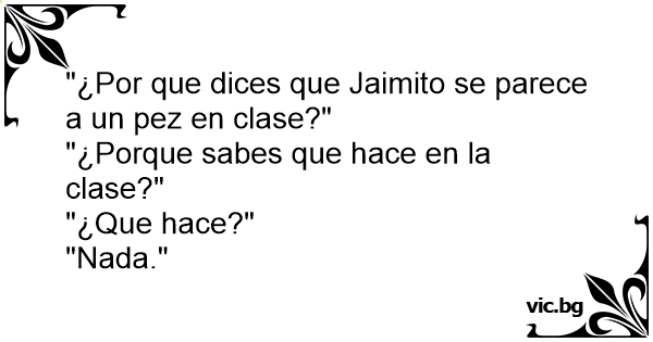 "¿Por que dices que Jaimito se parece a un pez en clase?"