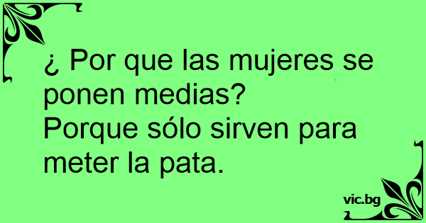 ¿ Por que las mujeres se ponen medias?<br />Porque sólo sirven para meter la pata.