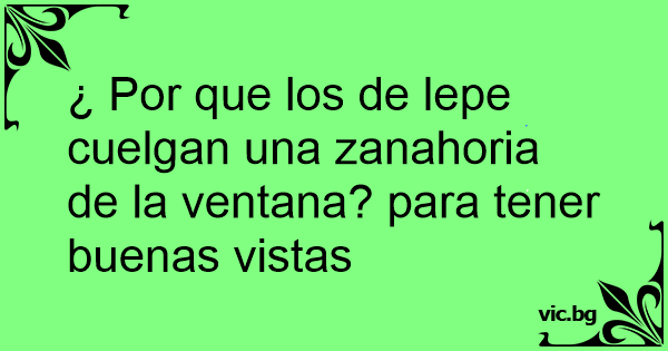 ¿ Por que los de lepe cuelgan una zanahoria de la ventana? para tener buenas vistas