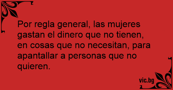 Por regla general, las mujeres gastan el dinero que no tienen, en cosas que no necesitan, para apantallar a personas que no quieren.