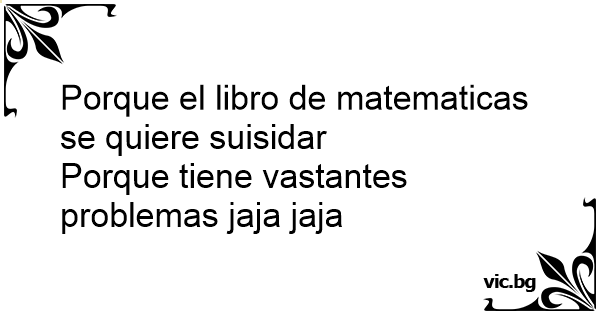 Porque el libro de matematicas se quiere suisidar Porque tiene vastantes problemas jaja jaja