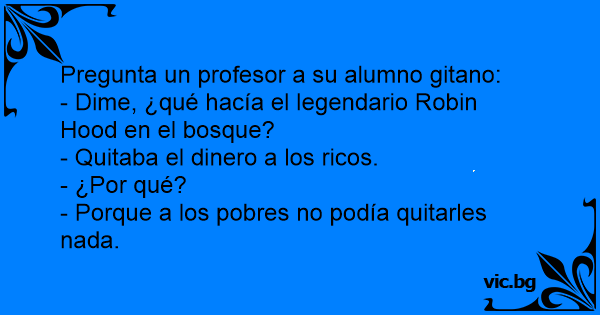 - Jaimito que hacia Robin Hood? - Robarle a los ricos. - Por que? - Por que a los pobres no les podia robar nada.