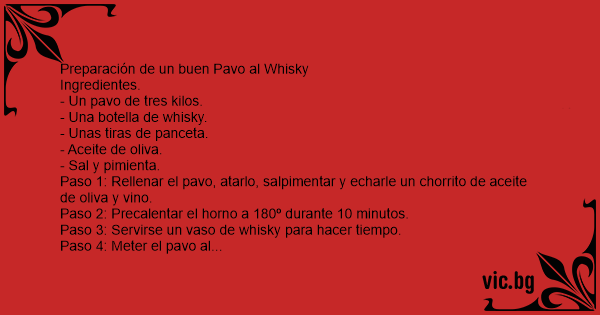 Vaso 8: Al cabo drun drato, hornir el abro bara condrolar y echar un chodreto de pavo al güisqui y odro de güiski a uno bismo