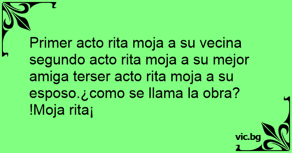 Primer acto rita moja a su vecina segundo acto rita moja a su mejor amiga terser acto rita moja a su esposo.¿como se llama la obra?
