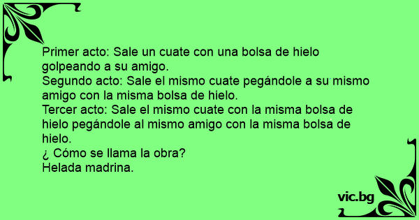 Tercer acto: Sale el mismo cuate соn la misma bolsa de hielo pegándole al mismo amigo соn la misma bolsa de hielo.