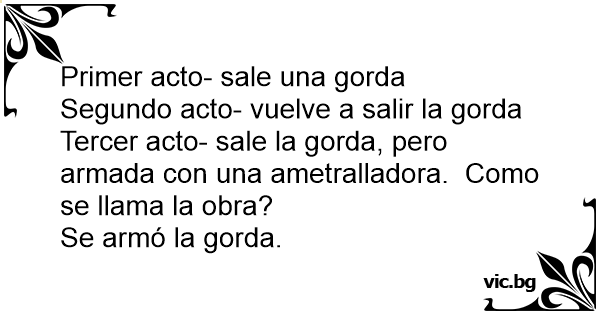 Tercer acto- sale la gorda, pero armada соn una ametralladora. Como se llama la obra?