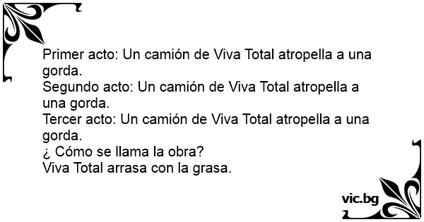 Primer acto: Un camión de Viva Total atropella a una gorda.