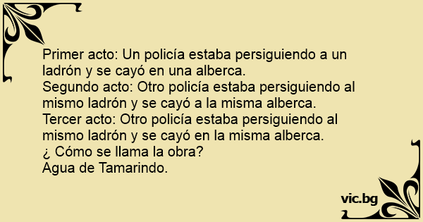 Primer acto: Un policía estaba persiguiendo a un ladrón y se cayó en una alberca.