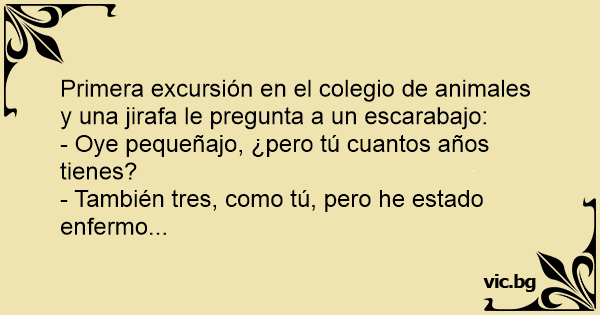 Primera excursión en el colegio de animales y una jirafa le pregunta a un escarabajo: