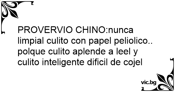 PROVERVIO CHINO:nunca limpial culito соn papel peliolico.. polque culito aplende a leel y culito inteligente dificil de cojel