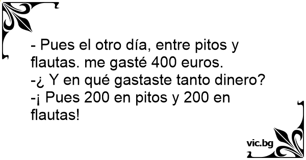 - Pues el otro día, entre pitos y flautas. me gasté 400 euros.