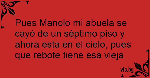 Pues Manolo mi abuela se cayó de un séptimo piso y ahora esta en el cielo, pues que rebote tiene esa vieja