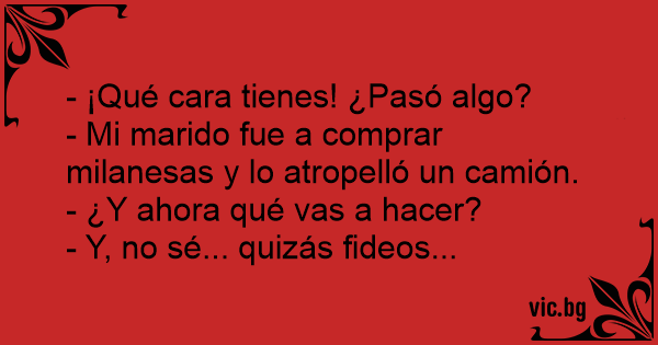- Mi marido fue a comprar milanesas y lo atropelló un camión.