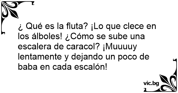 ¿ Qué es la fluta? ¡Lo que clece en los álboles! ¿Cómo se sube una escalera de caracol? ¡Muuuuy lentamente y dejando un poco de baba en cada escalón!