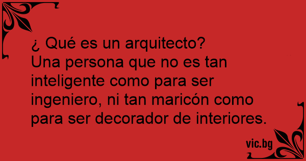 Una persona que no es tan inteligente como para ser ingeniero, ni tan маriсón como para ser decorador de interiores.