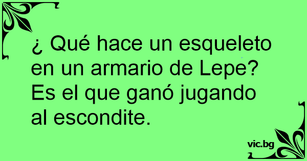 ¿ Qué hace un esqueleto en un armario de Lepe?<br />Es el que ganó jugando al escondite.
