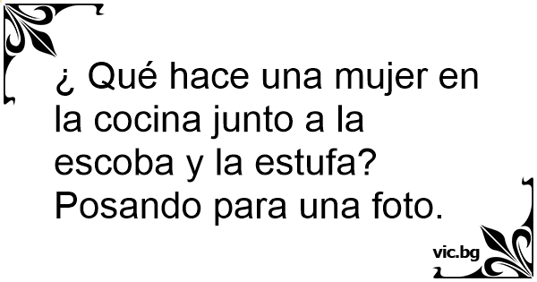 ¿ Qué hace una mujer en la cocina junto a la escoba y la estufa?
