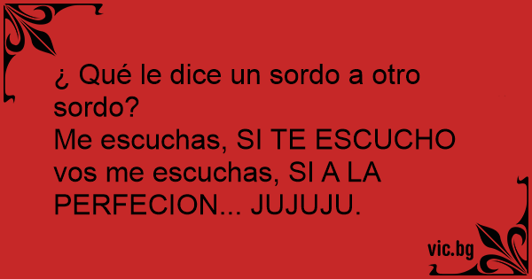 ¿ Qué le dice un sordo a otro sordo?<br />Me escuchas, SI TE ESCUCHO vos me escuchas, SI A LA PERFECION... JUJUJU.