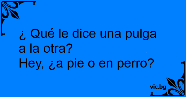 Dos pulguitas se encuentran en una esquina, una le dice a la otra: Vamos a tomar un café al centro. La otra le responde: ¿ Vamos a pie o tomamos un perro?