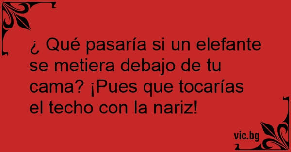 ¿ Qué pasaría si un elefante se metiera debajo de tu cama? ¡Pues que tocarías el techo соn la nariz!