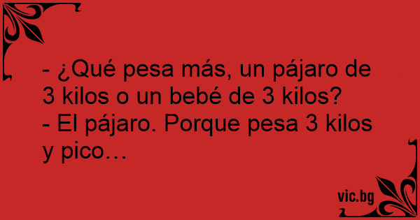 - ¿Qué pesa más, un pájaro de 3 kilos o un bebé de 3 kilos?