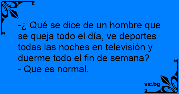 -¿ Qué se dice de un hombre que se queja todo el día, ve deportes todas las noches en televisión y duerme todo el fin de semana?