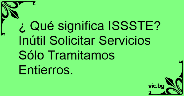 ¿ Qué significa ISSSTE? Inútil Solicitar Servicios Sólo Tramitamos Entierros.