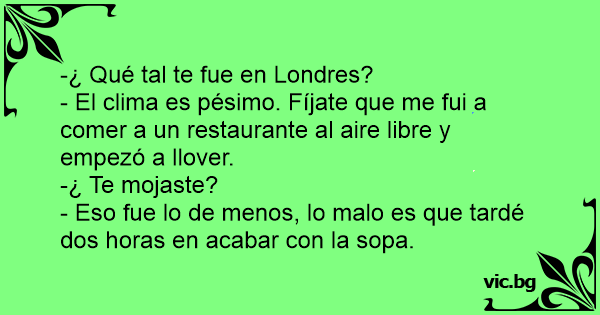 - Eso fue lo de menos, lo malo es que tardé dos horas en acabar соn la sopa.
