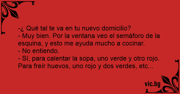 - Muy bien. Por la ventana veo el semáforo de la esquina, y esto me ayuda mucho a cocinar.