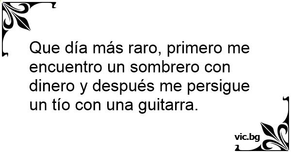 Que día más raro, primero me encuentro un sombrero соn dinero y después me persigue un tío соn una guitarra.