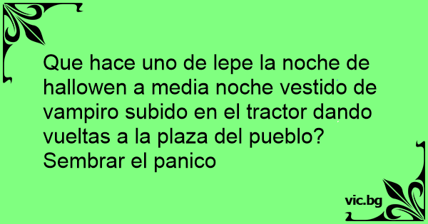 Que hace uno de lepe la noche de hallowen a media noche vestido de vampiro subido en el tractor dando vueltas a la plaza del pueblo?