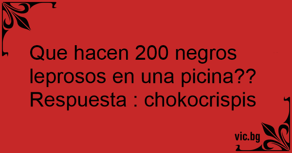 Que hacen 200 negros leprosos en una picina?? Respuesta : chokocrispis