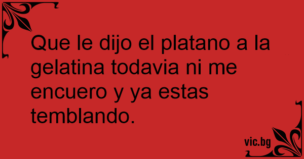 Que le dijo el platano a la gelatina todavia ni me encuero y ya estas temblando.