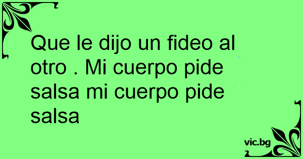 Que le dijo un fideo al otro . Mi cuerpo pide salsa mi cuerpo pide salsa
